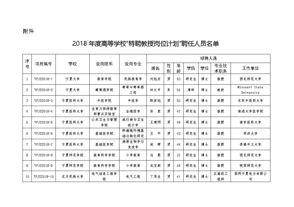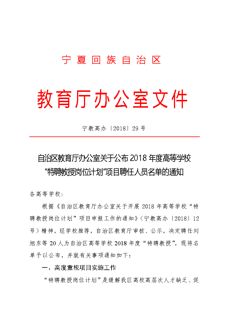自治区教育厅办公室关于公布2018年度高等学校特聘教授岗位计划项目聘任人员名单的通知
