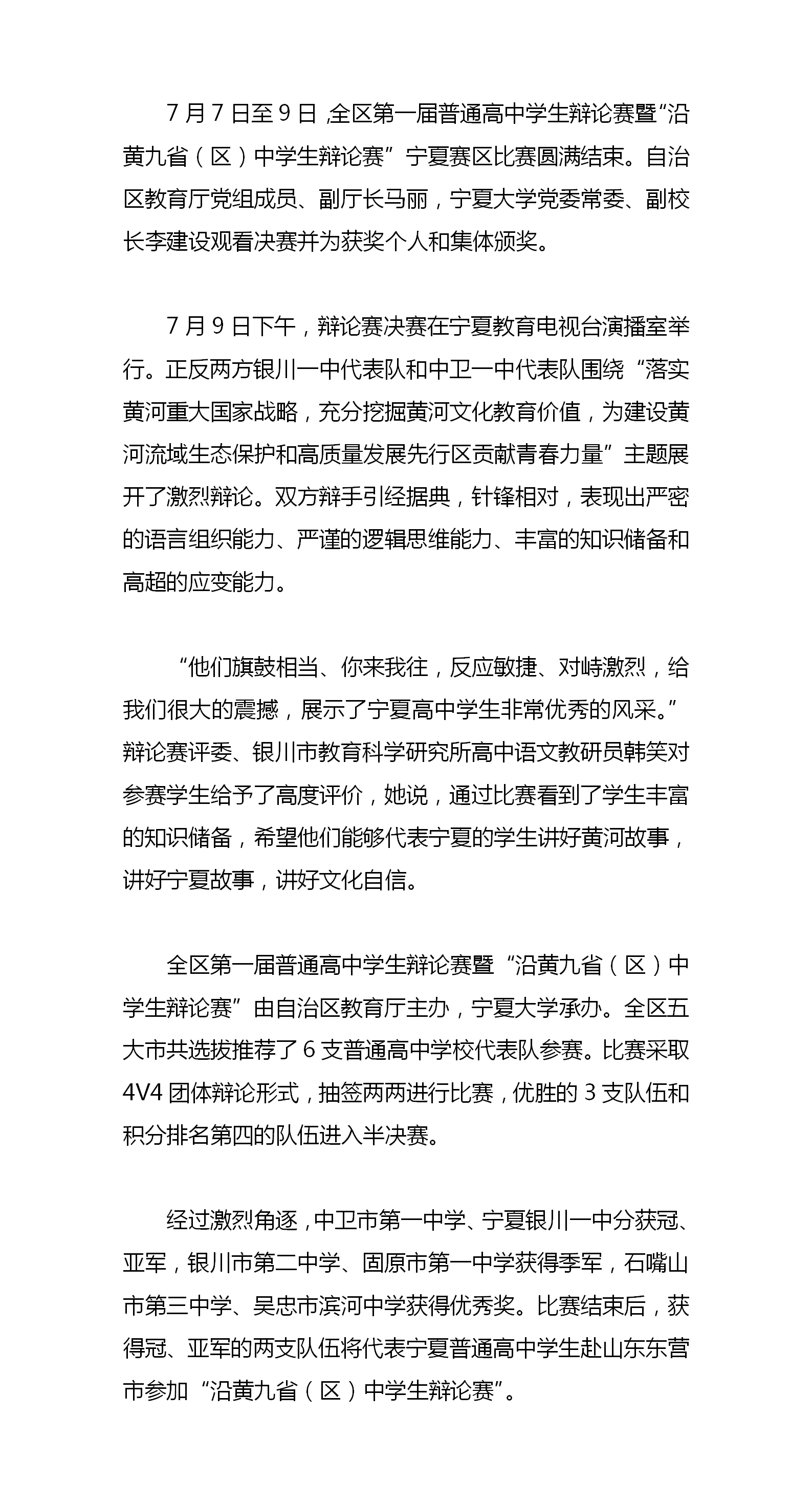 全区第一届普通高中学生辩论赛暨“沿黄九省(区)中学生辩论赛”宁夏赛区比赛成功举办